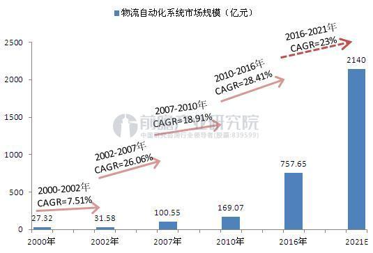 基于以下幾個方面,我們認為,物流倉儲自動化是整個自動化中增長最穩(wěn)定、成長空間最大的子板塊之一,預計在未來五年內(nèi),國內(nèi)物流倉儲自動化市場仍可維持20%以上的增長,到2021年有望成長至2000億元容量以上的大市場。
